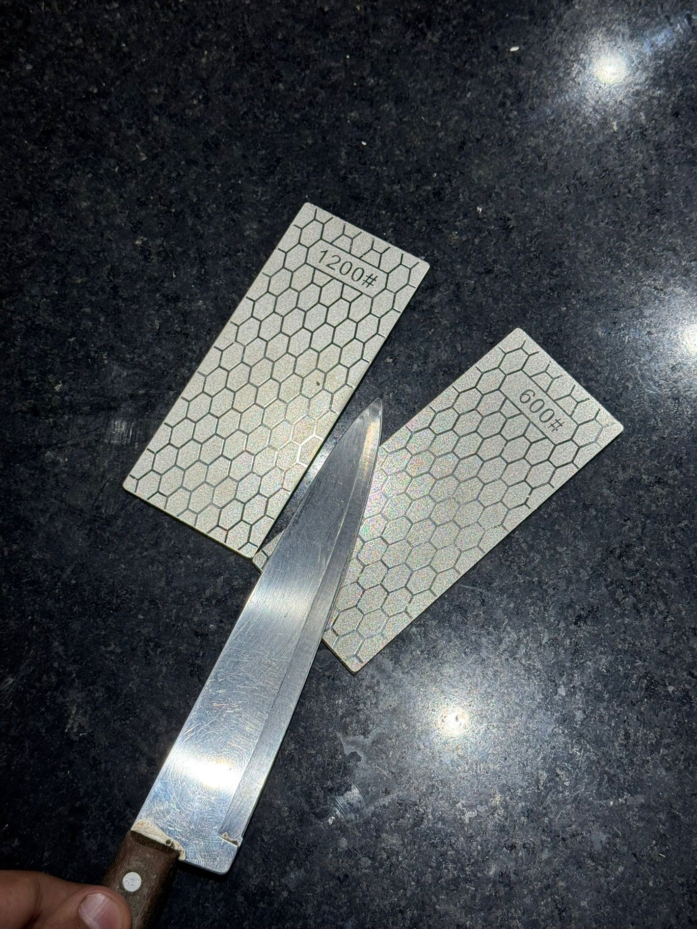 Tengo un lote de piedras de las comunes pero despues que probe estas no las uso mas jaja. Afilan super rapido y no precisan agua!!